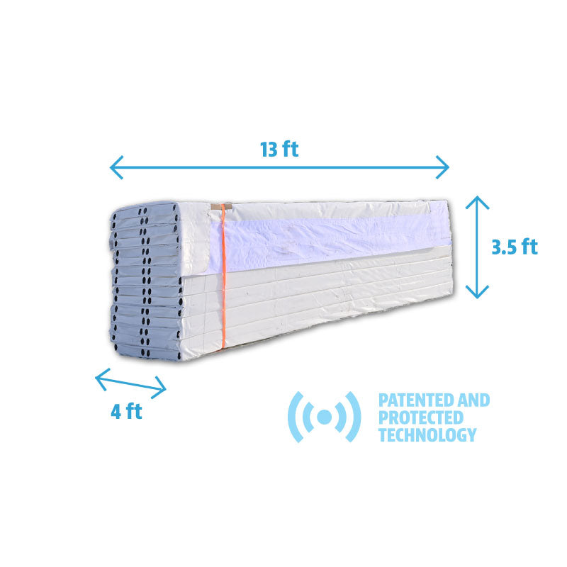 - 13 ft x 4 ft x 3.5 ft when packed for storage and transport