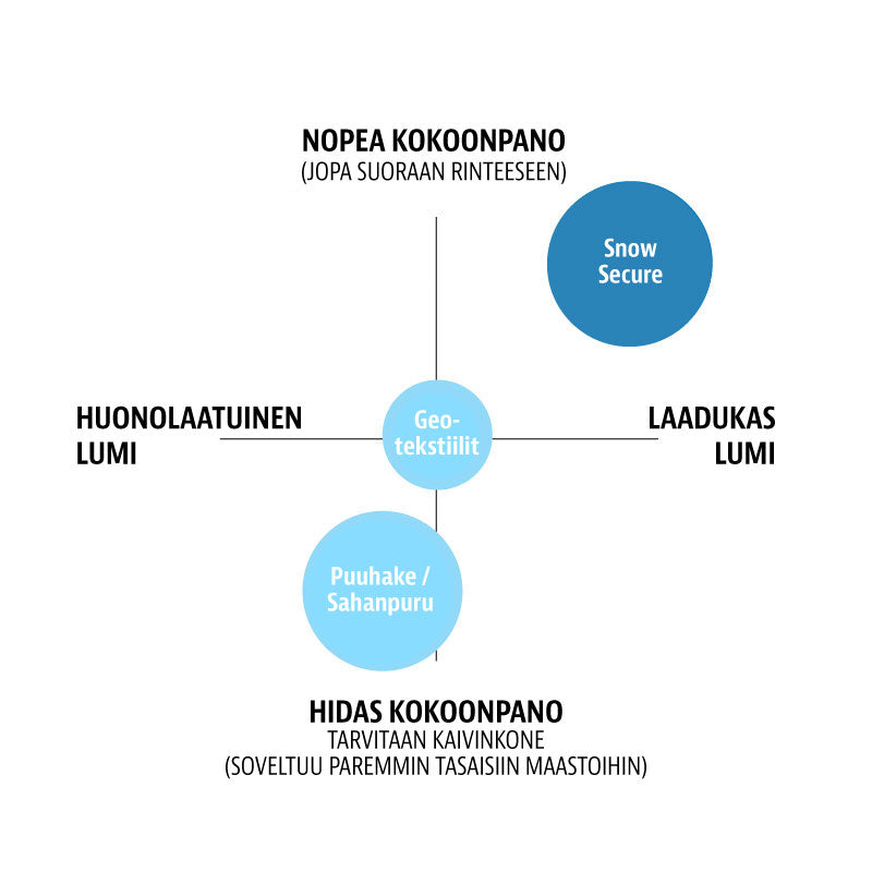- Energiankulutusta voidaan minimoida lumettamalla suoraan rinteeseen talven kovilla pakkasilla.