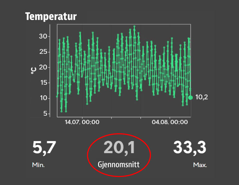 TEMPERATUR MÅLT I TROMSØ 6.7.-26.8.2024